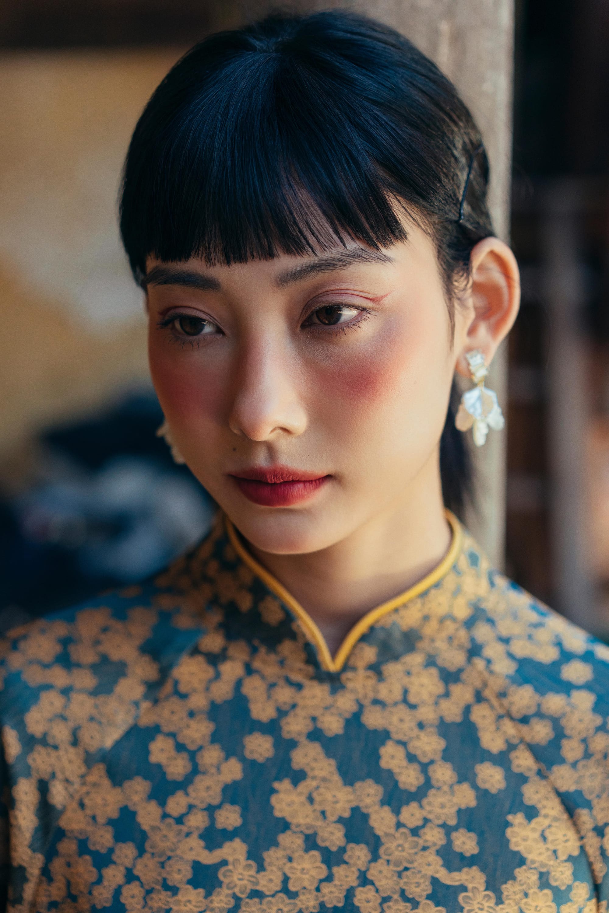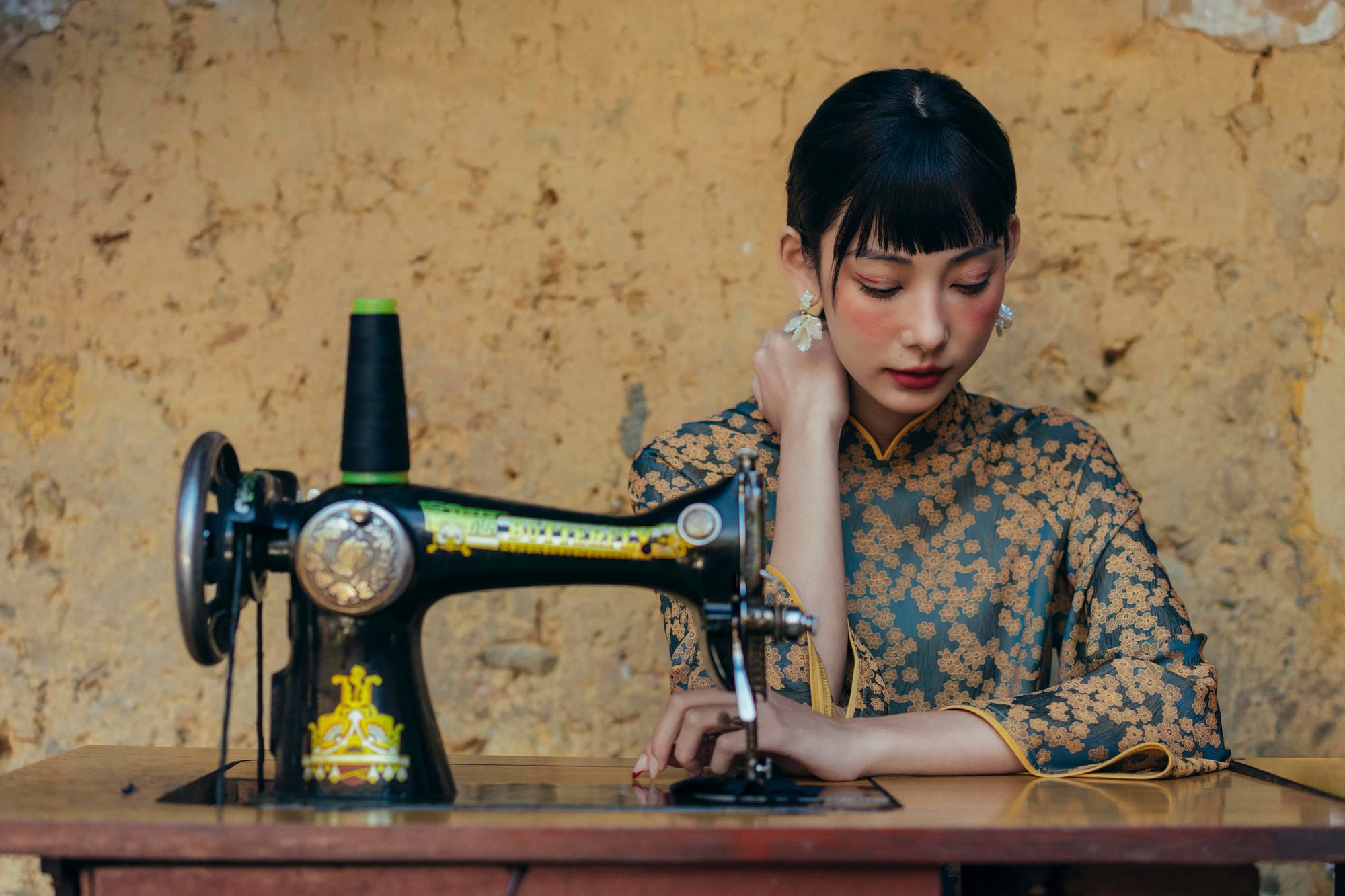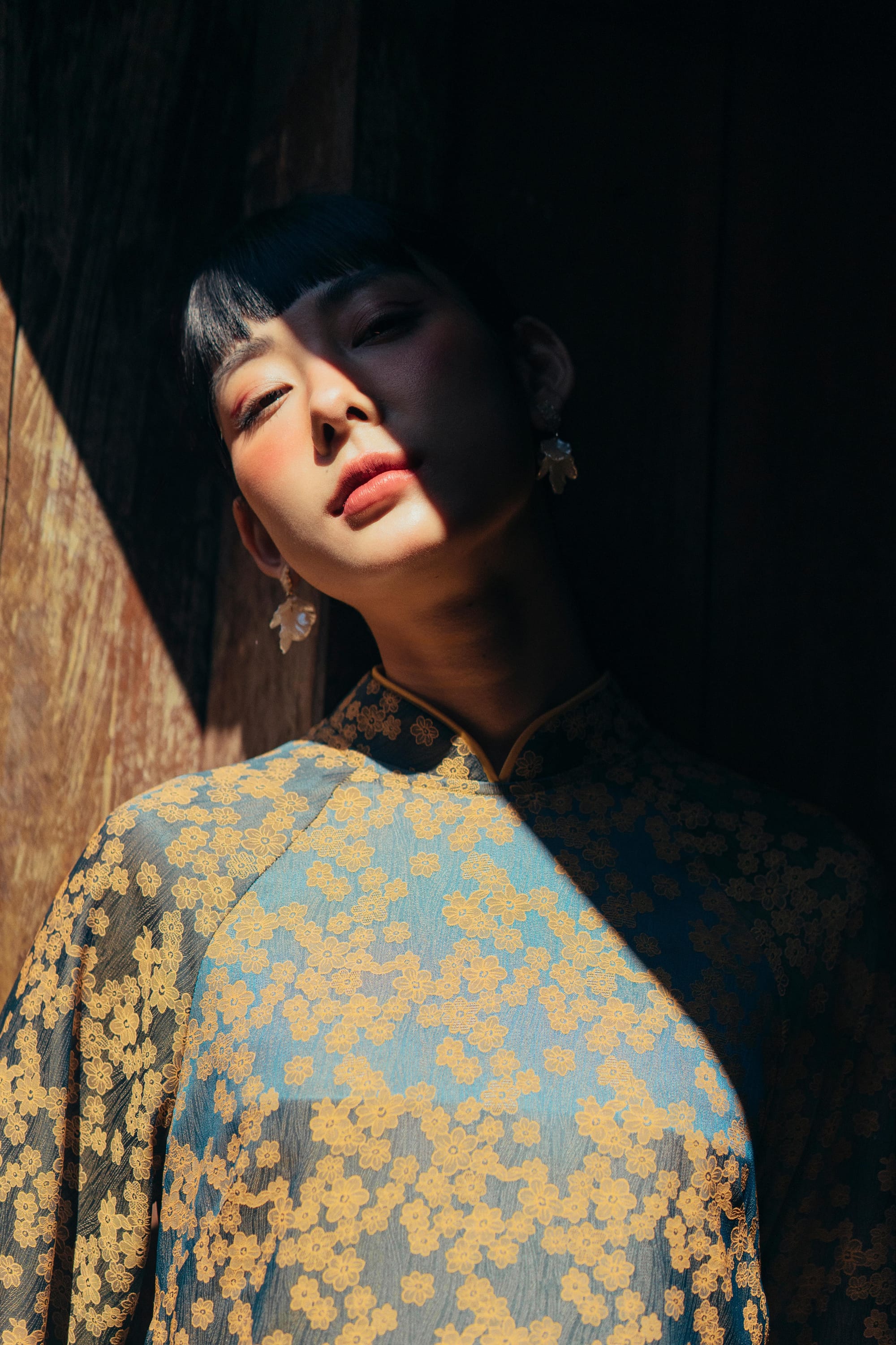 𝐀́𝐨 𝐃𝐚̀𝐢 𝐇𝐨𝐚̀𝐢 𝐏𝐡𝐨̂́ 𝐇𝐨𝐚 - phom suông có chiết nhẹ phần lưng nếu cô Mây muốn có một mẫu Áo trẻ trung nhưng vẫn giữ được nét truyền thông của Áo Dài. Áo với lớp vải nhung bên ngoài, lót lụa hoa bên trong, Mây chắc rằng đây là một trải nghiệm mặc thú vị nhất trong những năm qua đấy nhé.