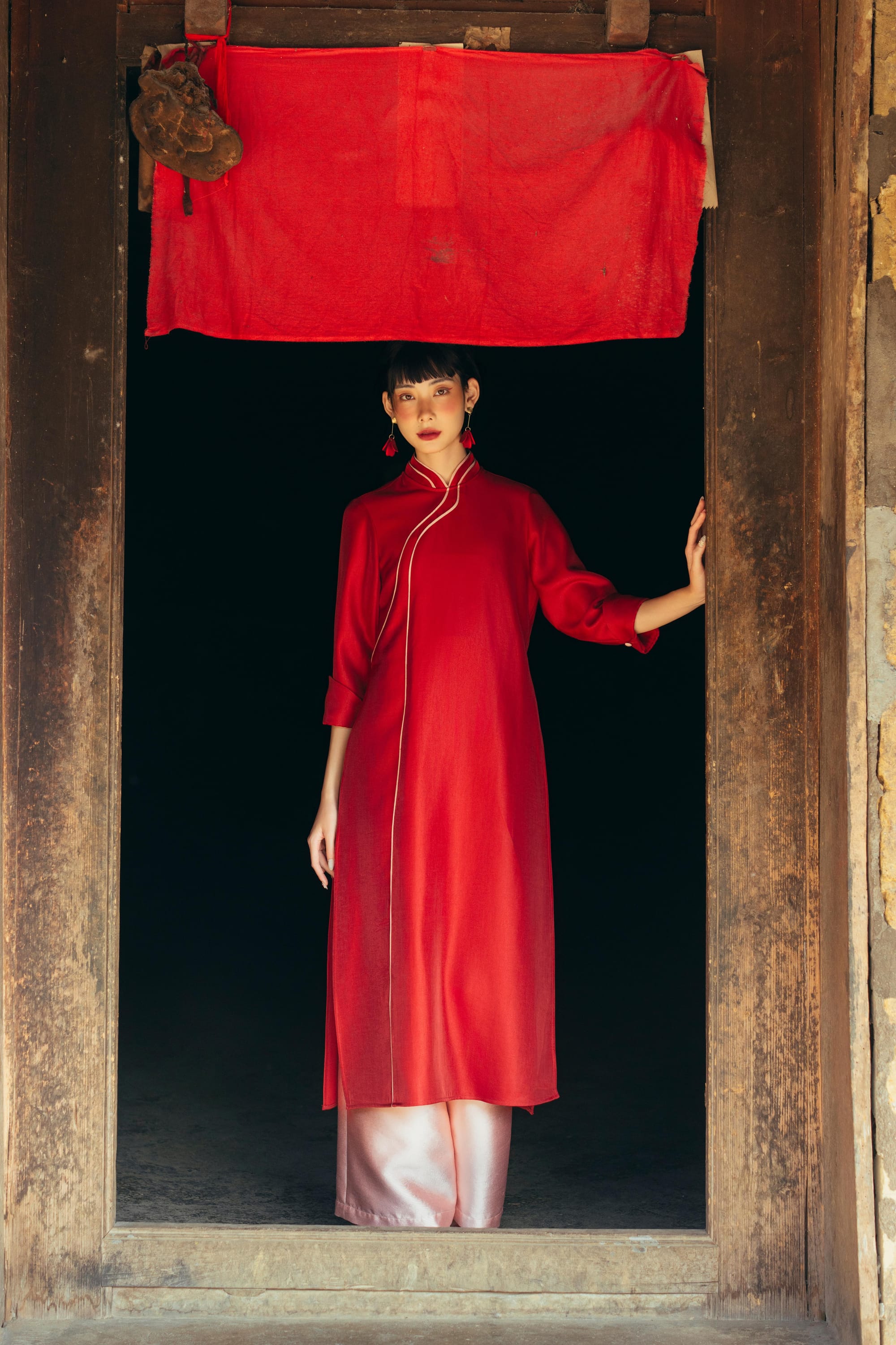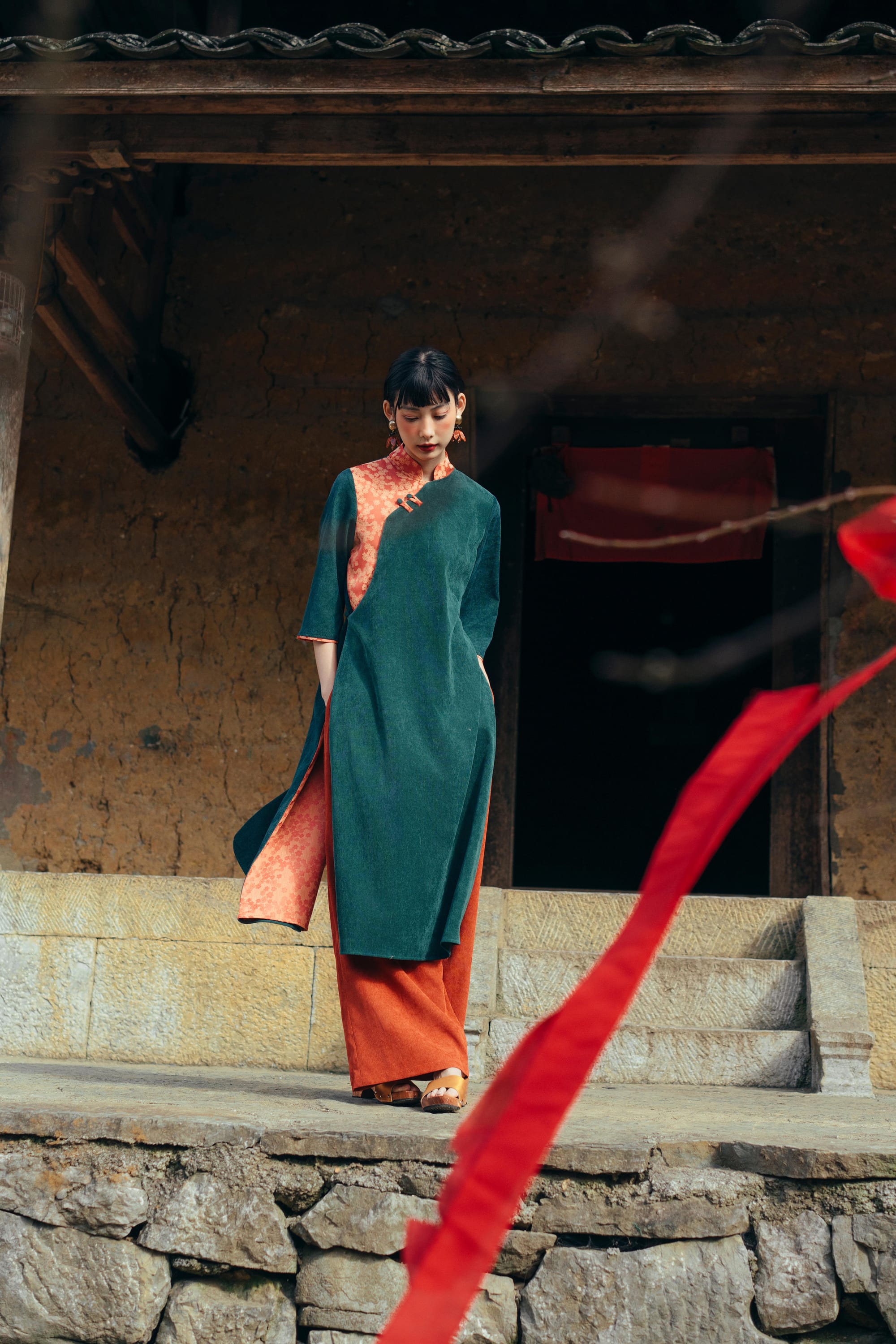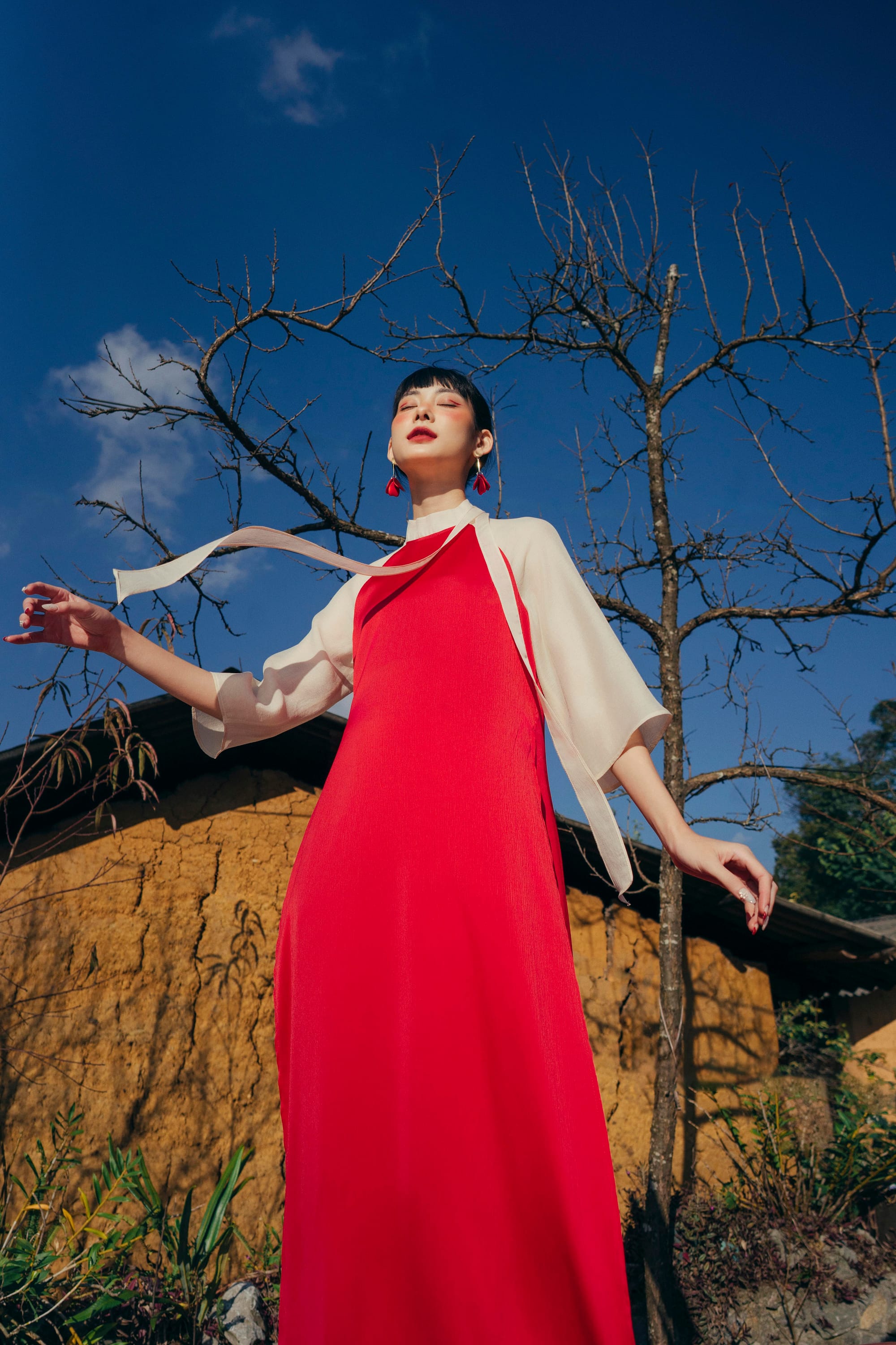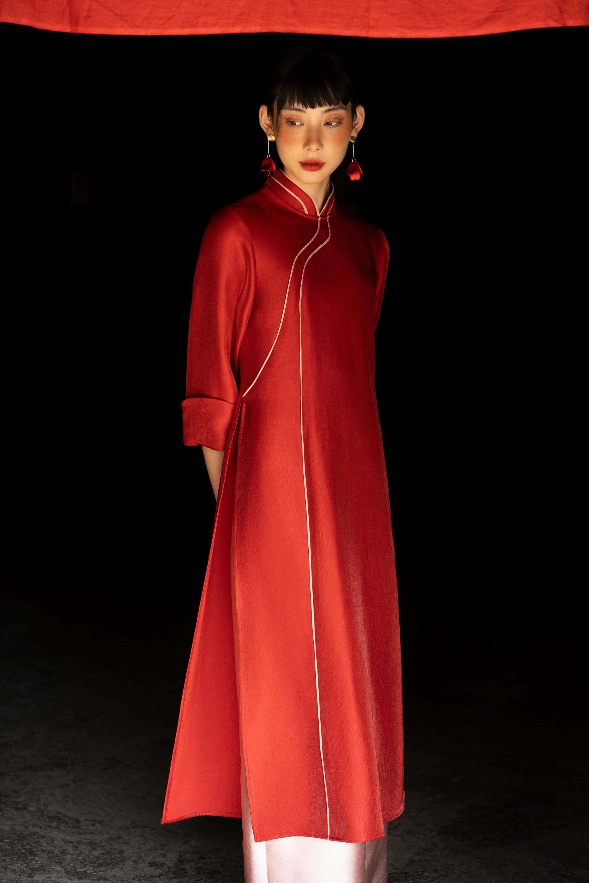 𝐀́𝐨 𝐃𝐚̀𝐢 𝐂𝐚́𝐧𝐡 𝐓𝐡𝐮̛ - một mẫu Áo Dài với chi tiết cổ cách điệu giúp tổng thể cả BST của Mây thêm thú vị. Phiên bản Cánh Thư mới, với màu sắc mới và thêm một lớp tà kép phía trong để mỗi khi diện Cánh Thư, cô Mây sẽ thêm phần bay bổng như cảm hứng đằng sau mẫu Áo Dài này (nếu cô còn nhớ).